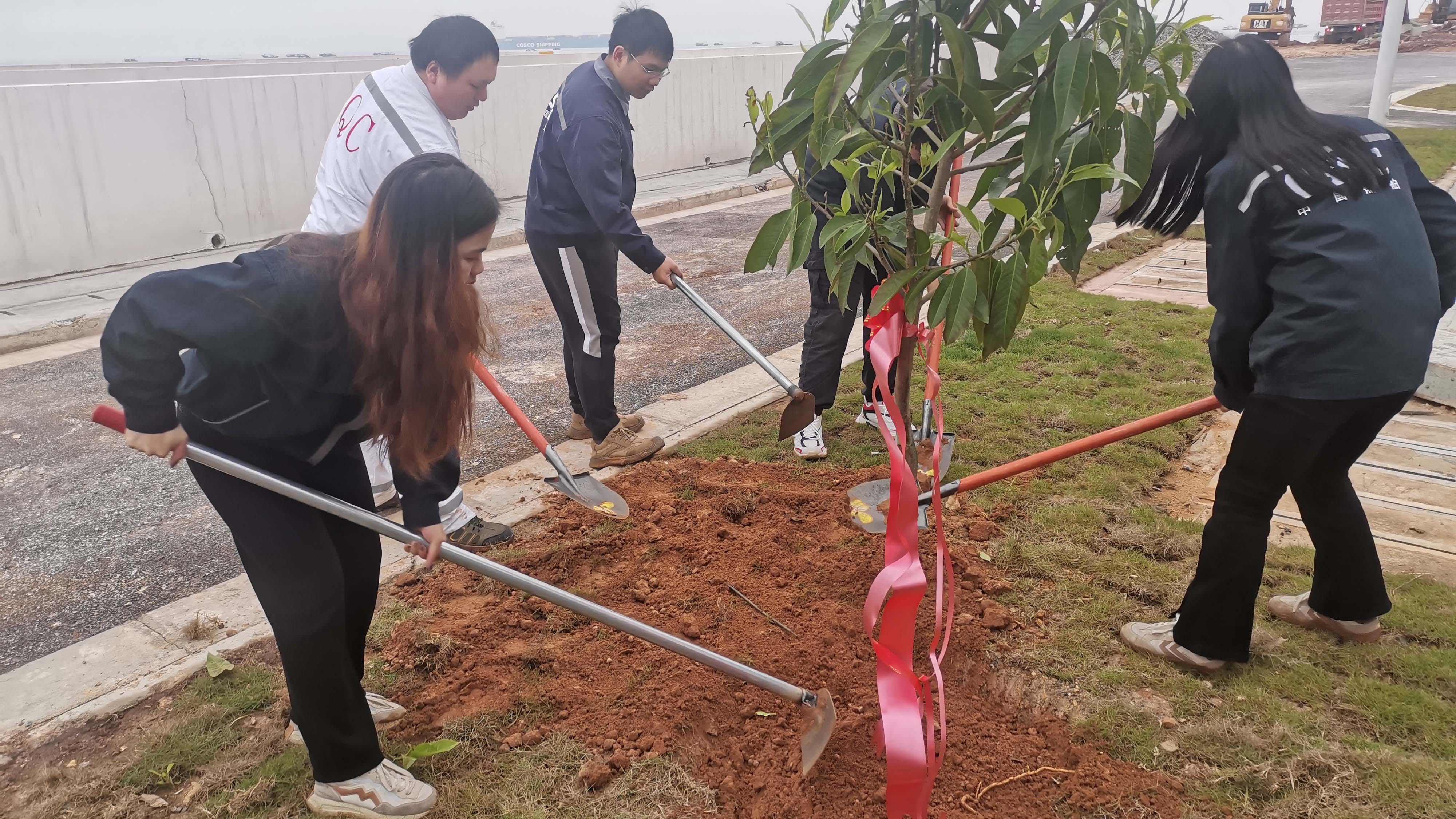 活動(dòng)現(xiàn)場(chǎng),大家分工有序,默契配合,有的鏟土、有的扶苗、有的踩實(shí)修整,個(gè)個(gè)干勁十足,呈現(xiàn)出一片熱火朝天的勞動(dòng)場(chǎng)景。40棵樹苗僅用了半個(gè)小時(shí)就全部種植完畢,昂首挺立、整齊劃一的屹立在廠區(qū),為春日里的廠區(qū)增添了一抹綠意和盎然生機(jī)。