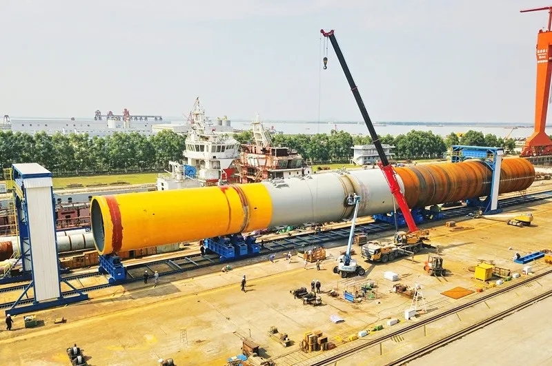 公司的生產(chǎn)場地面積超過70萬平方米,擁有海上風(fēng)電導(dǎo)管架、基礎(chǔ)鋼管樁、大直徑單樁和穩(wěn)樁平臺等產(chǎn)品生產(chǎn)線: