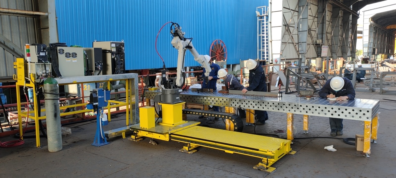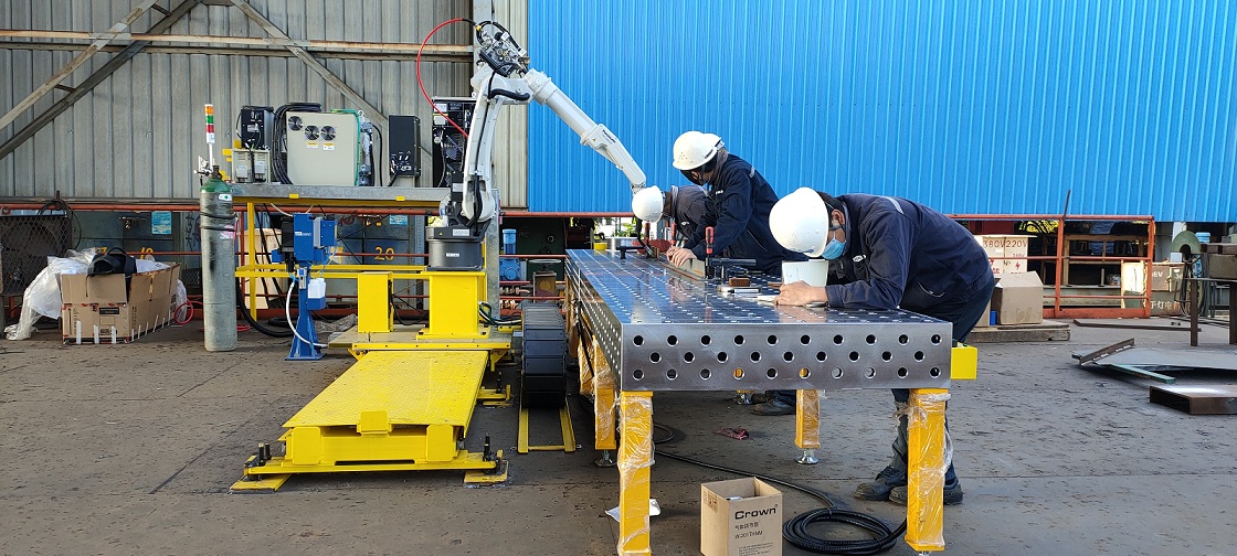目前,公司具備直梯專項焊接機器人、電纜托架專項焊接機器人、一套固定多用途焊接機器人、一套帶軌道自動焊接機器人,可以焊接多種規(guī)格(6米以內(nèi))的工件。從應(yīng)用自動化設(shè)備以來,焊接效率提升了200%,焊接質(zhì)量合格率接近100%。這也對周圍整日埋頭干活的一線操作人員帶來了沖擊,潛移默化中讓他們對學(xué)習(xí)新事物有了更好的接受心態(tài)。