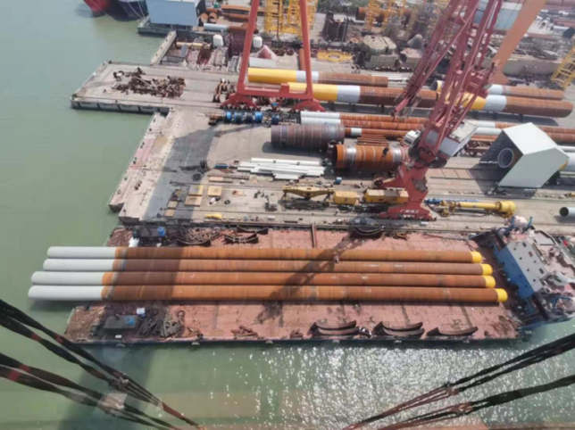 3月24日,公司東莞基地交付的第四批導管架——中鐵大橋局粵電陽江風電導管架19#、06#、15#風機導管架在東莞廣東中遠海運重工有限公司碼頭順利完工交付。